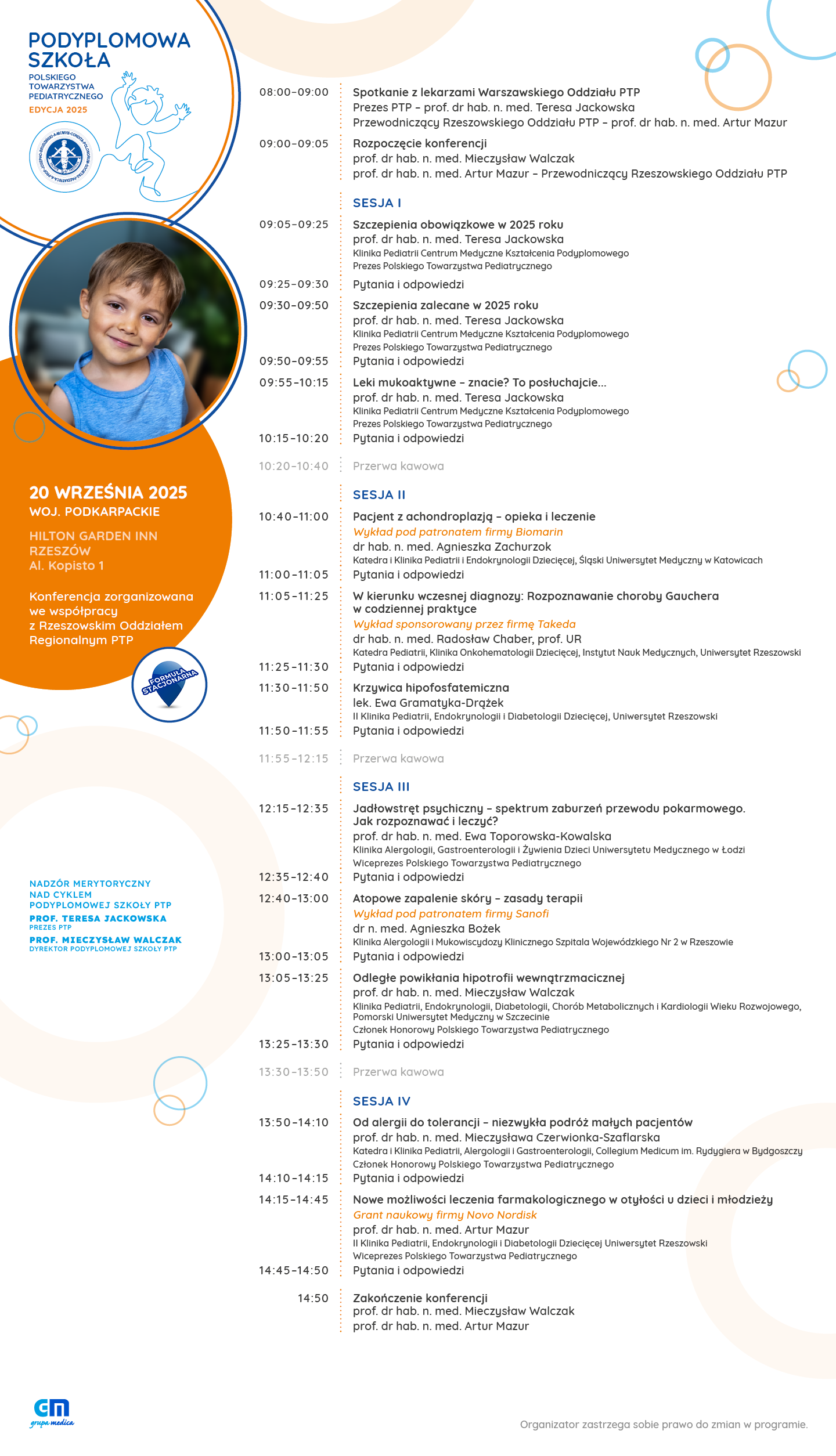 od 9:00 Konferencja Podyplomowej Szkoły Polskiego Towarzystwa Pediatrycznego
